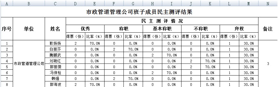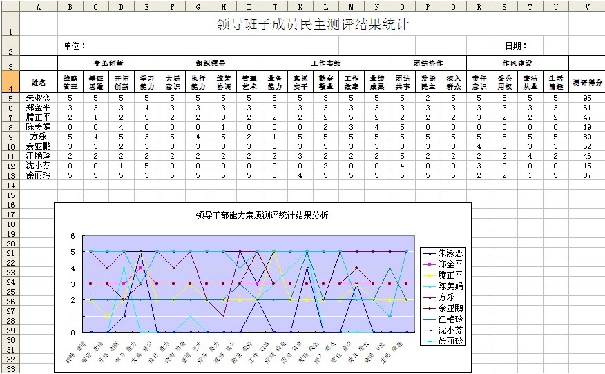 附:典型測評表及考核結果